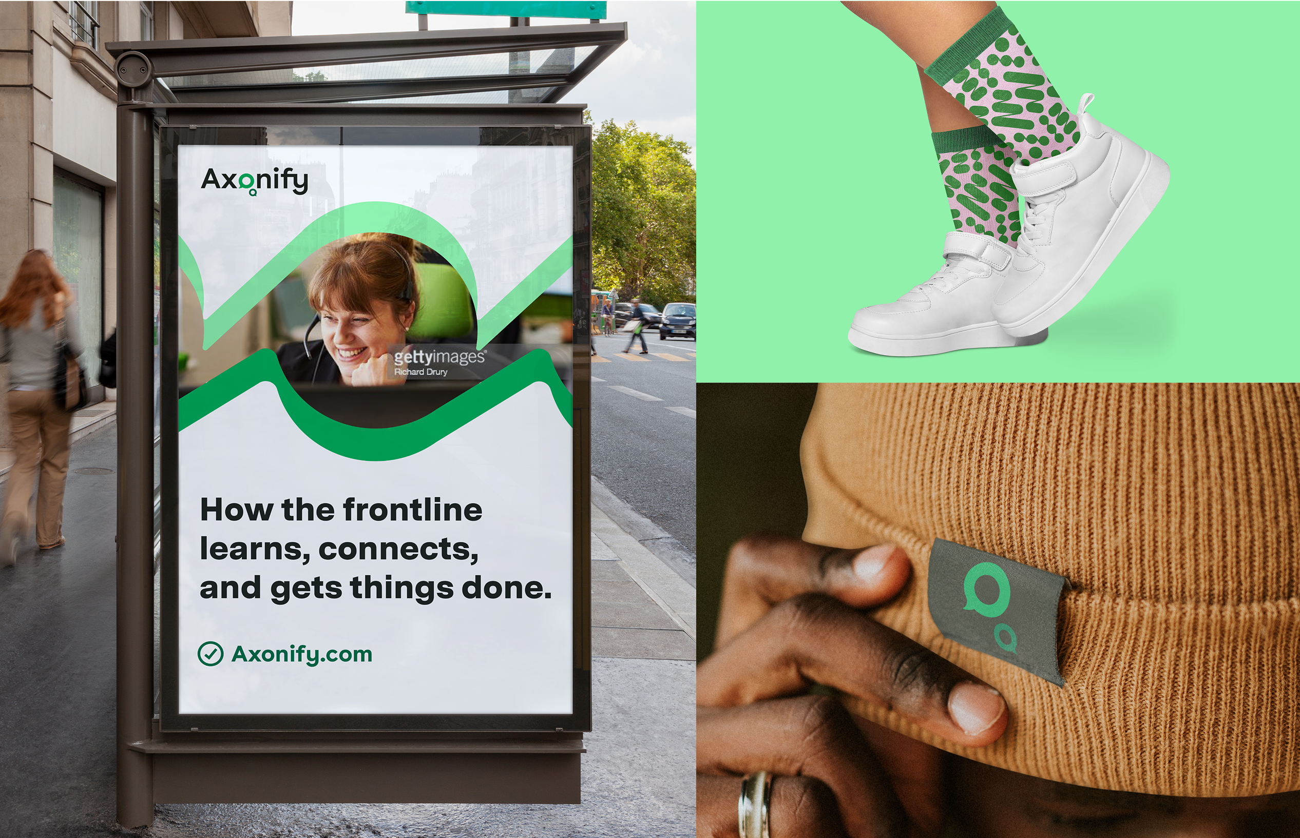 TSC worked closely with Axonify’s senior leadership team on market research, brand development, and activation that told the brand story in ways that would appeal to stakeholders across their ecosystem. The result was a clear visual articulation of the motion, connection, and fluid energy that is key to Axonify’s brand experience.